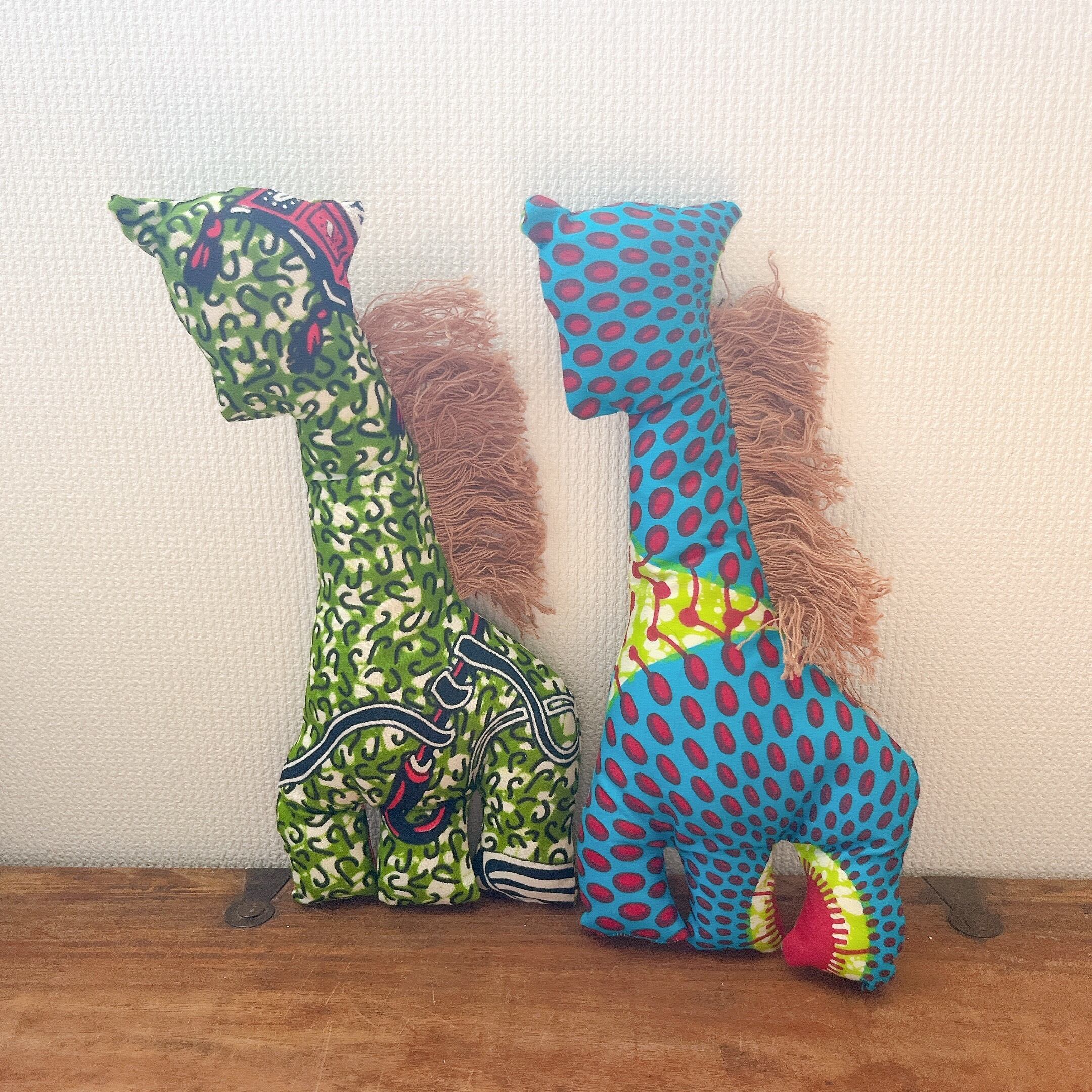 アフリカンプリントで作ったきりんのぬいぐるみです。